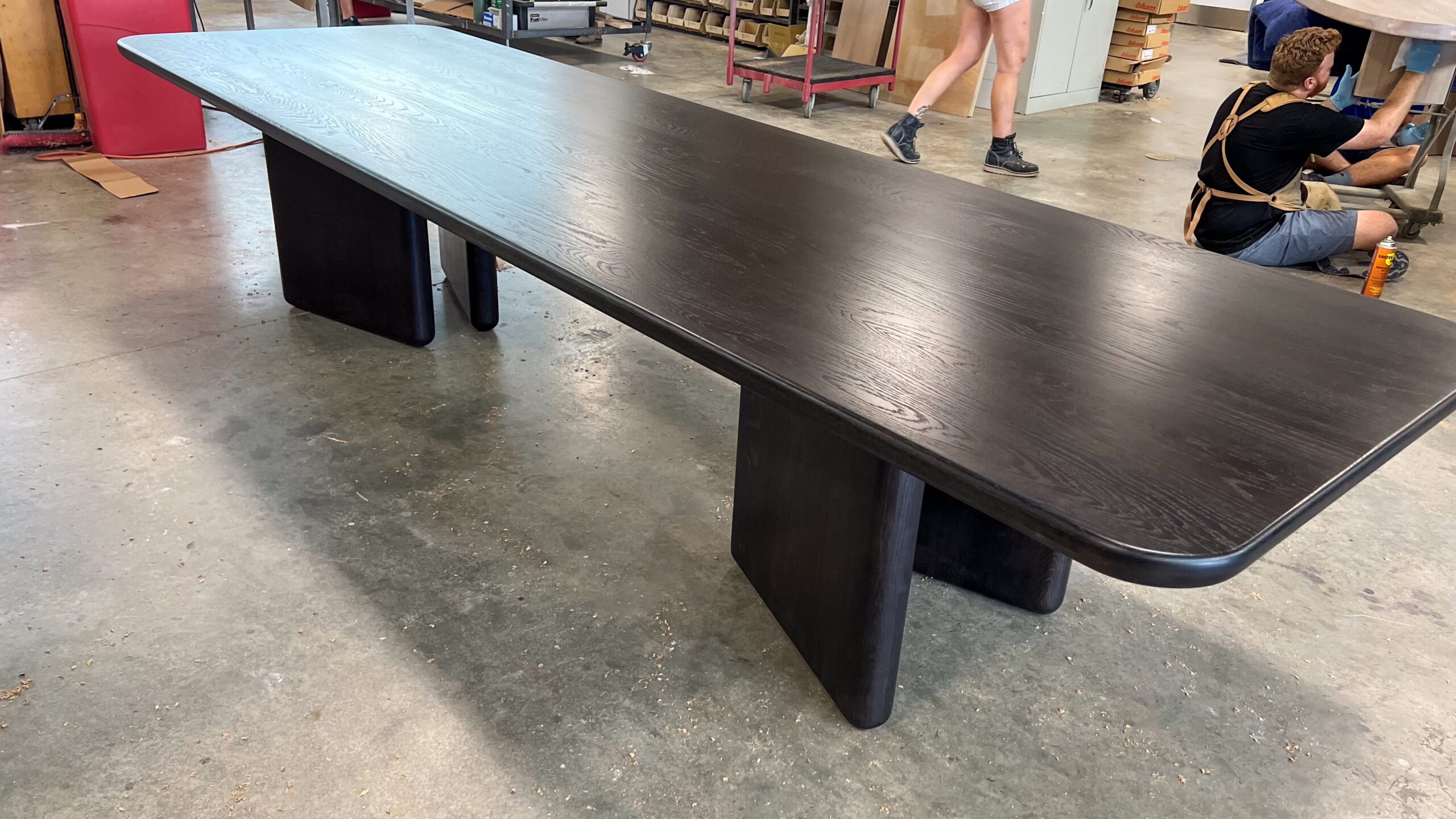 An ebonized oak extra large and extra thick table ready to send out to the New England area. ⁠